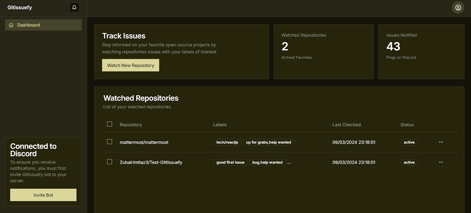 Add our bot to your Discord server for automated issue tracking and updates.